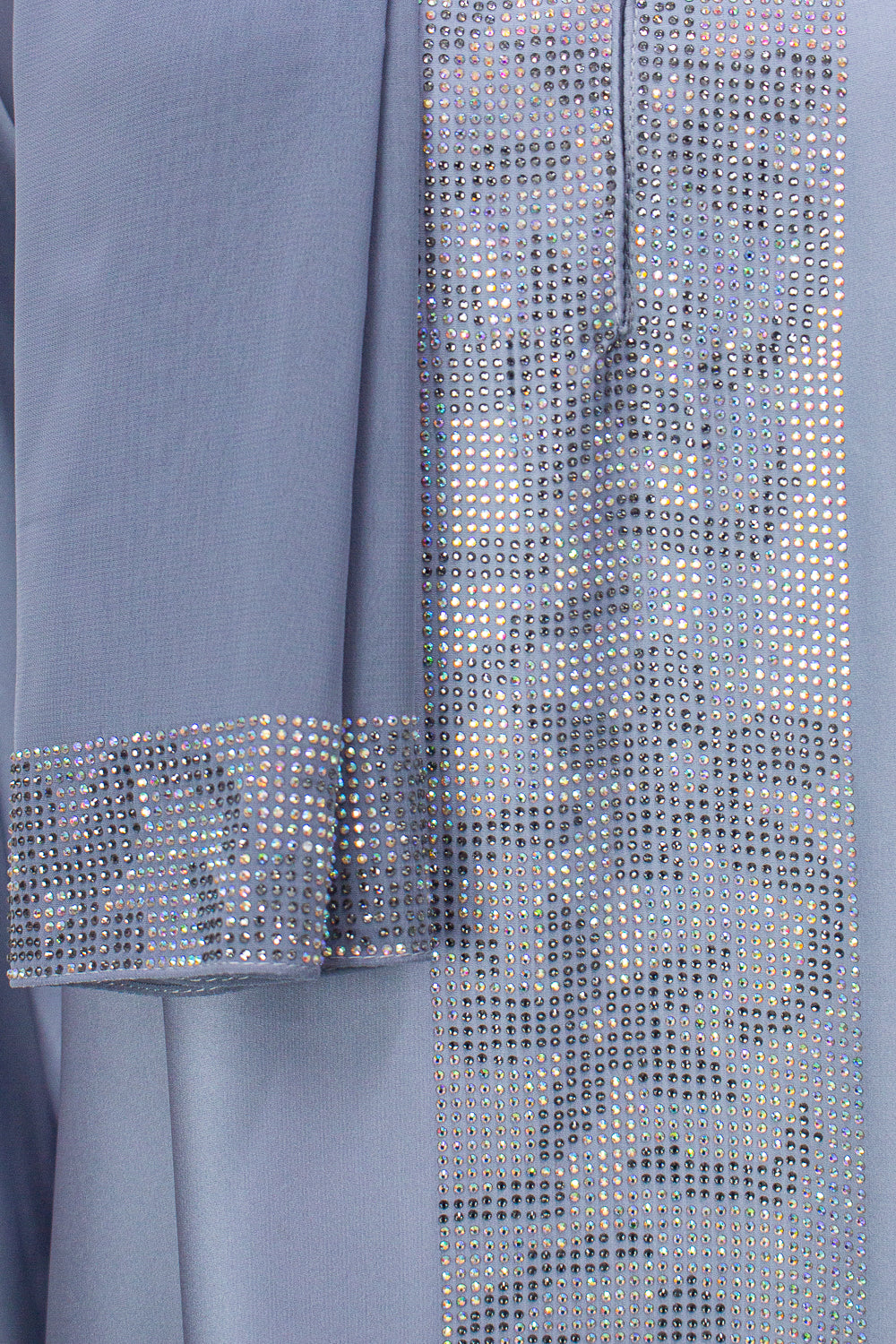 The straight-cut silhouette offers a sleek and timeless look, while the exclusive crystal embellishment cascading from the neckline down to the hem adds a touch of opulence and sparkle to every movement. Designed with a button at the neck, it provides effortless wear and comfort without compromising style.