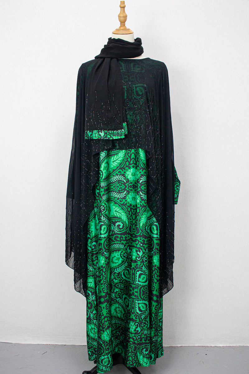 Queen Azizah Printed Abaya, Black