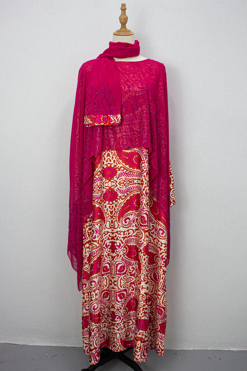 Queen Azizah Printed Abaya, Hot Pink