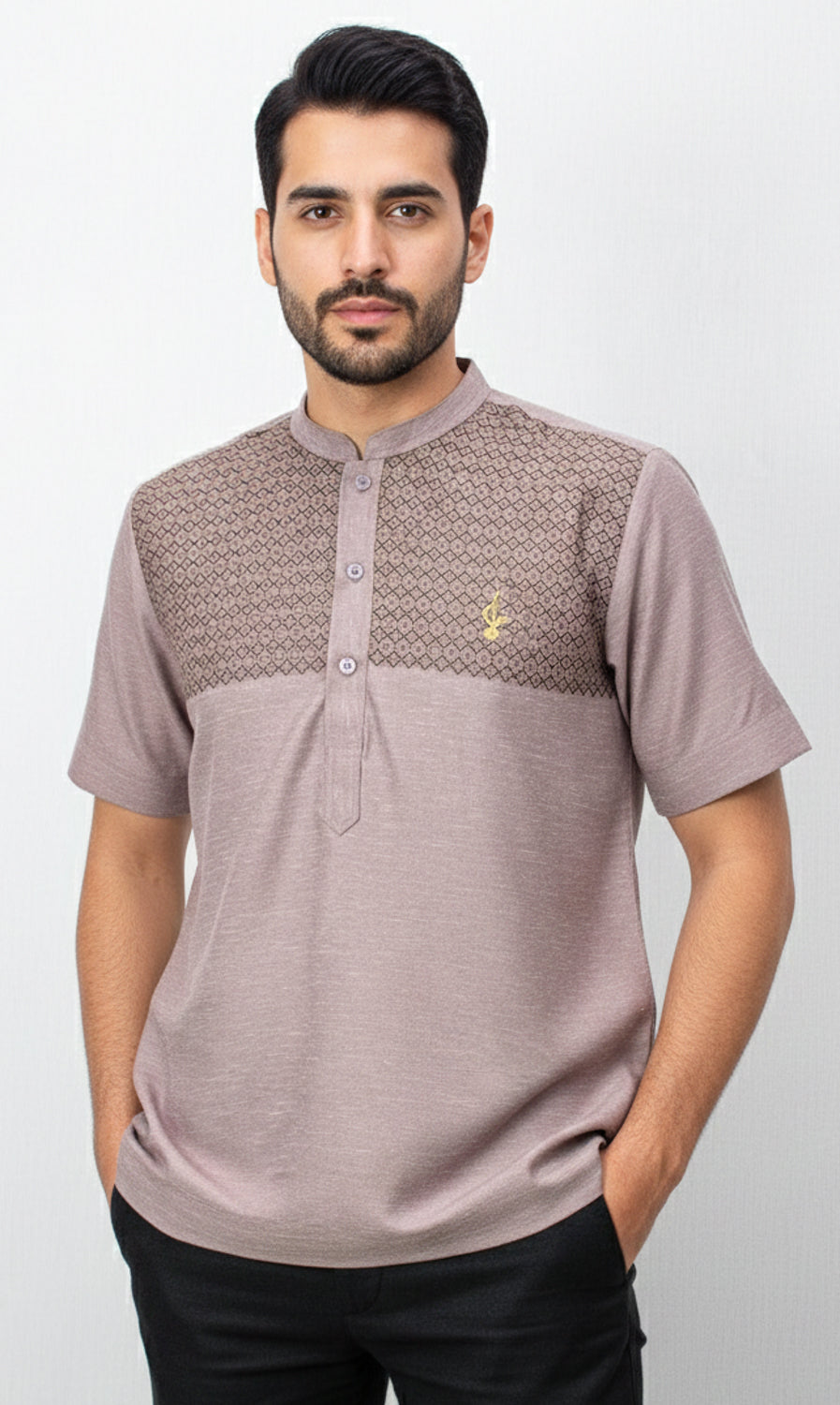 The Ashraf Kurta is a versatile essential made for both casual days and special occasions. Designed with a mandarin collar and batik-inspired prints across the shoulder and chest, it brings a modern edge to a timeless style.