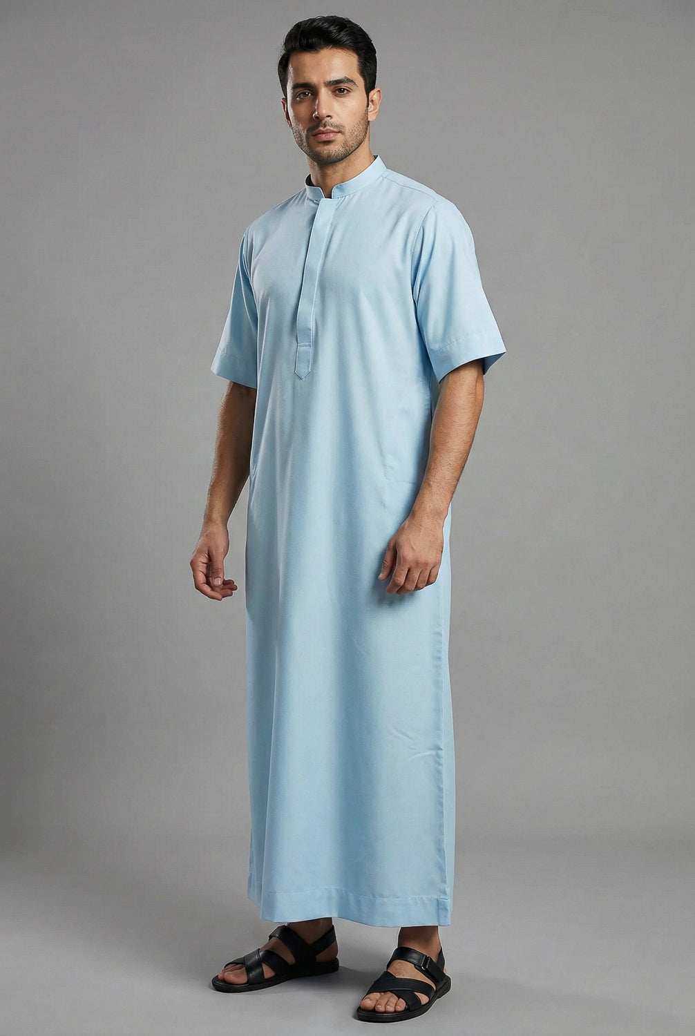 The Amir Short Sleeve Jubba brings a fresh, contemporary twist to a timeless classic. Made from soft, breathable cotton, it ensures maximum comfort while maintaining the modest, elegant look every Muslim man appreciates.