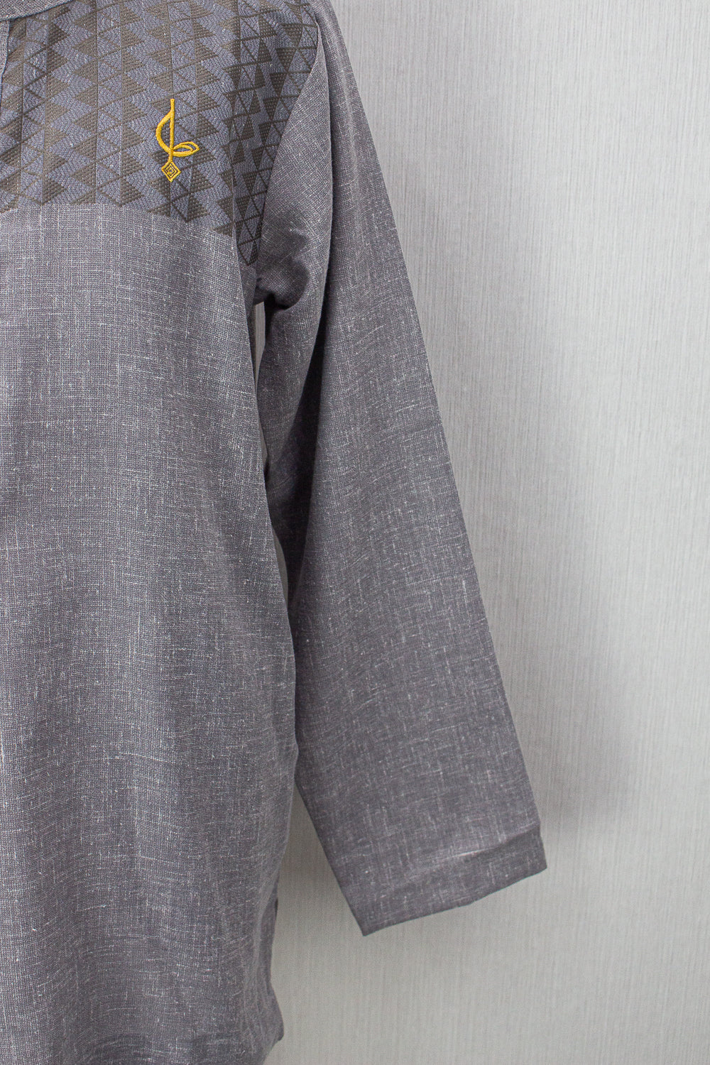 Let your child dress in comfort and style with the Ashraf Kurta Boys. Designed with a mandarin collar and playful tribal print detailing on the shoulder and chest, this piece brings a modern twist to traditional wear — perfect for both casual outings and special occasions.