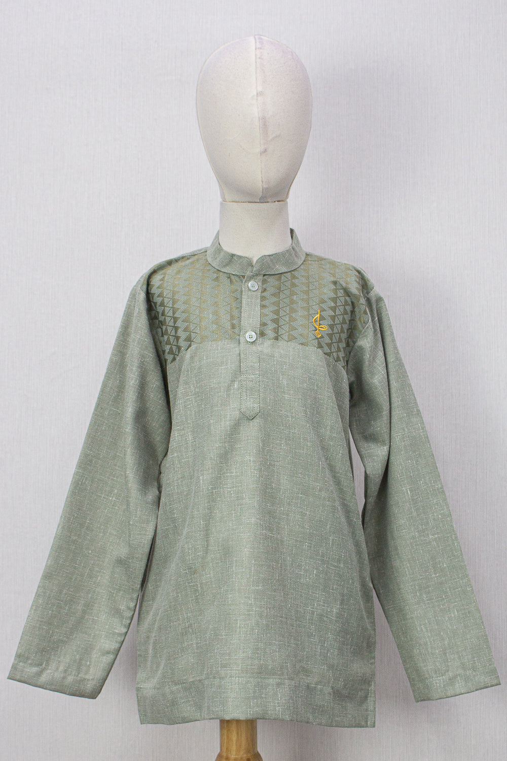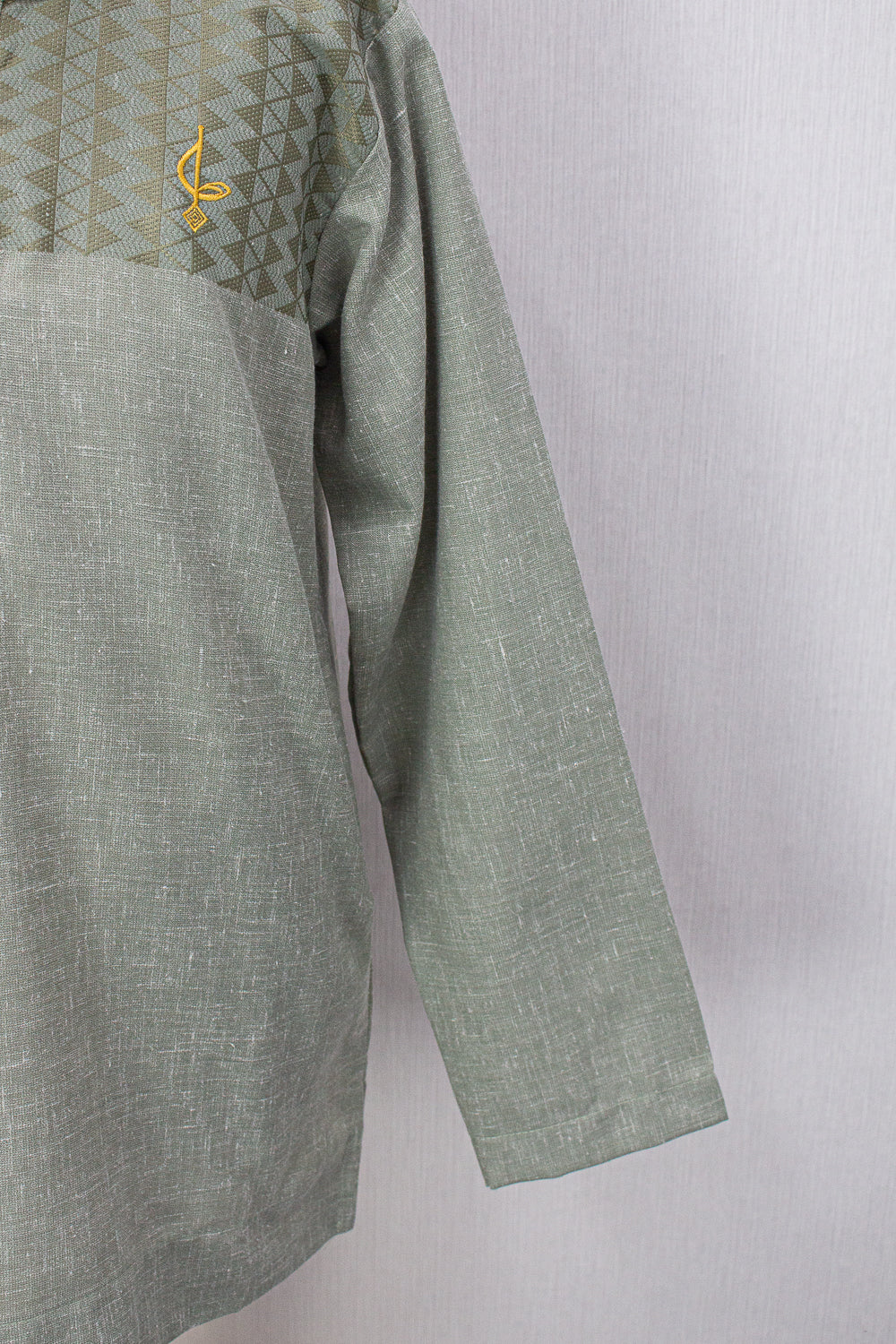 Let your child dress in comfort and style with the Ashraf Kurta Boys. Designed with a mandarin collar and playful tribal print detailing on the shoulder and chest, this piece brings a modern twist to traditional wear — perfect for both casual outings and special occasions.
