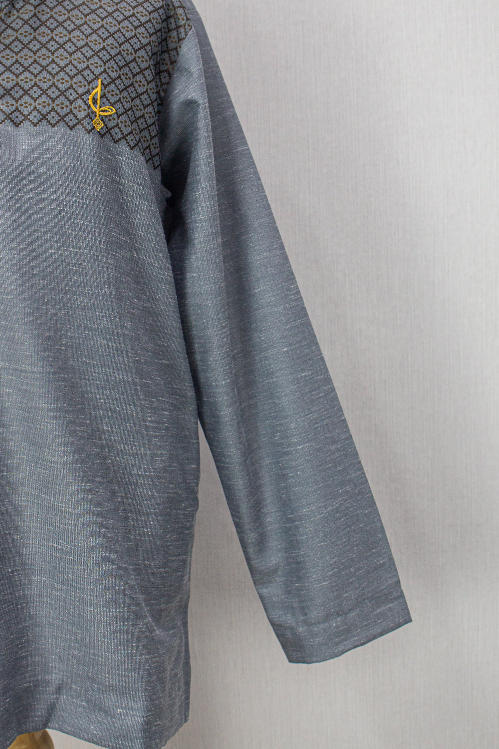 Let your child dress in comfort and style with the Ashraf Kurta Boys. Designed with a mandarin collar and playful tribal print detailing on the shoulder and chest, this piece brings a modern twist to traditional wear — perfect for both casual outings and special occasions.