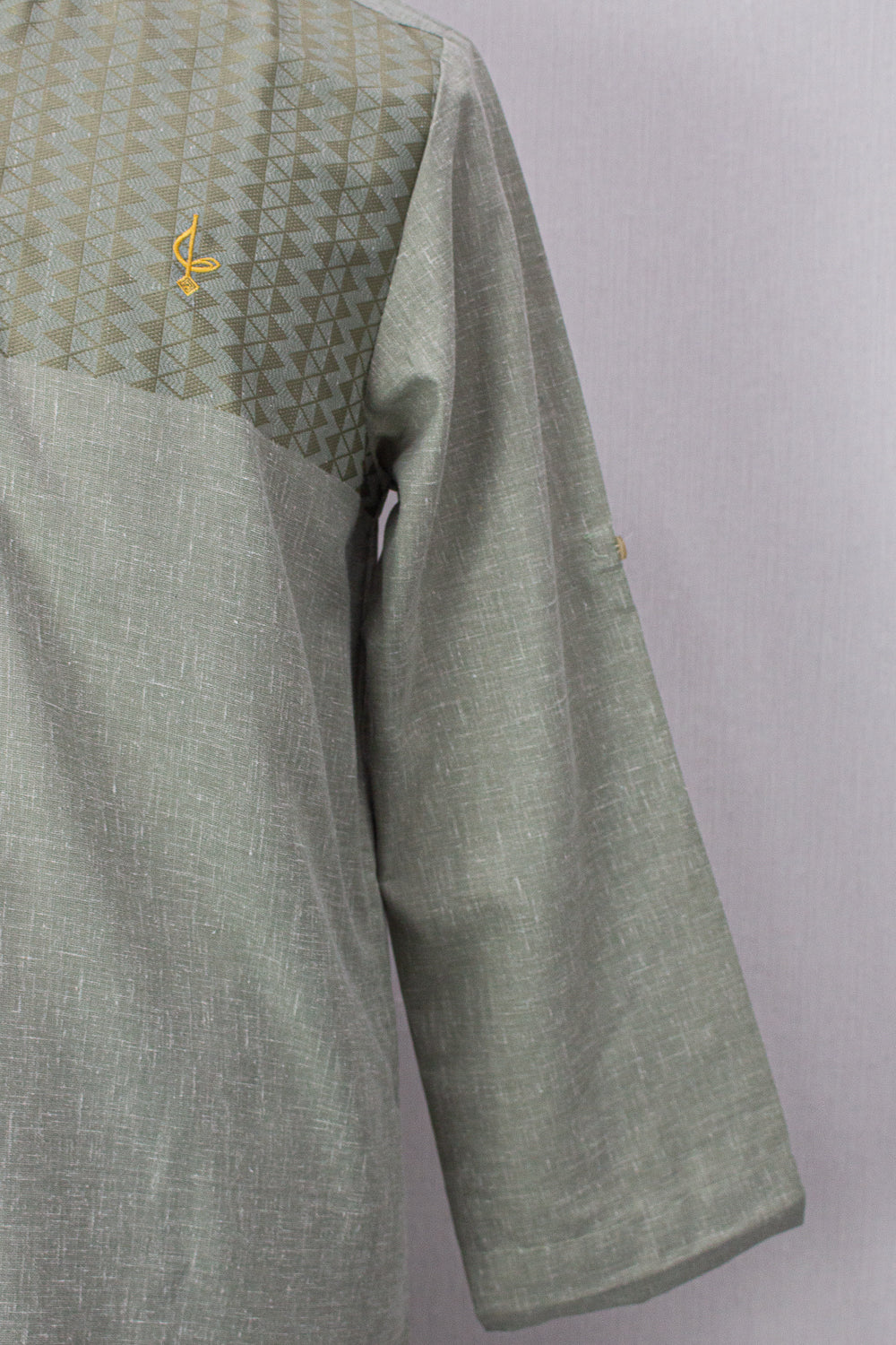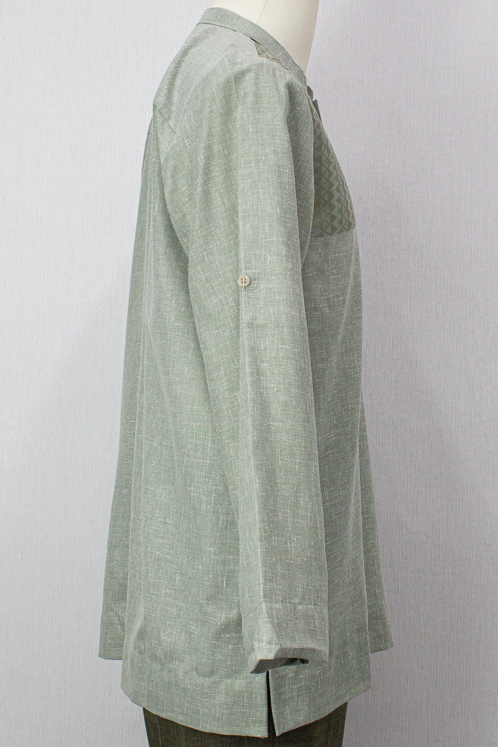 - Mandarin collar with tribal print detail for a unique look