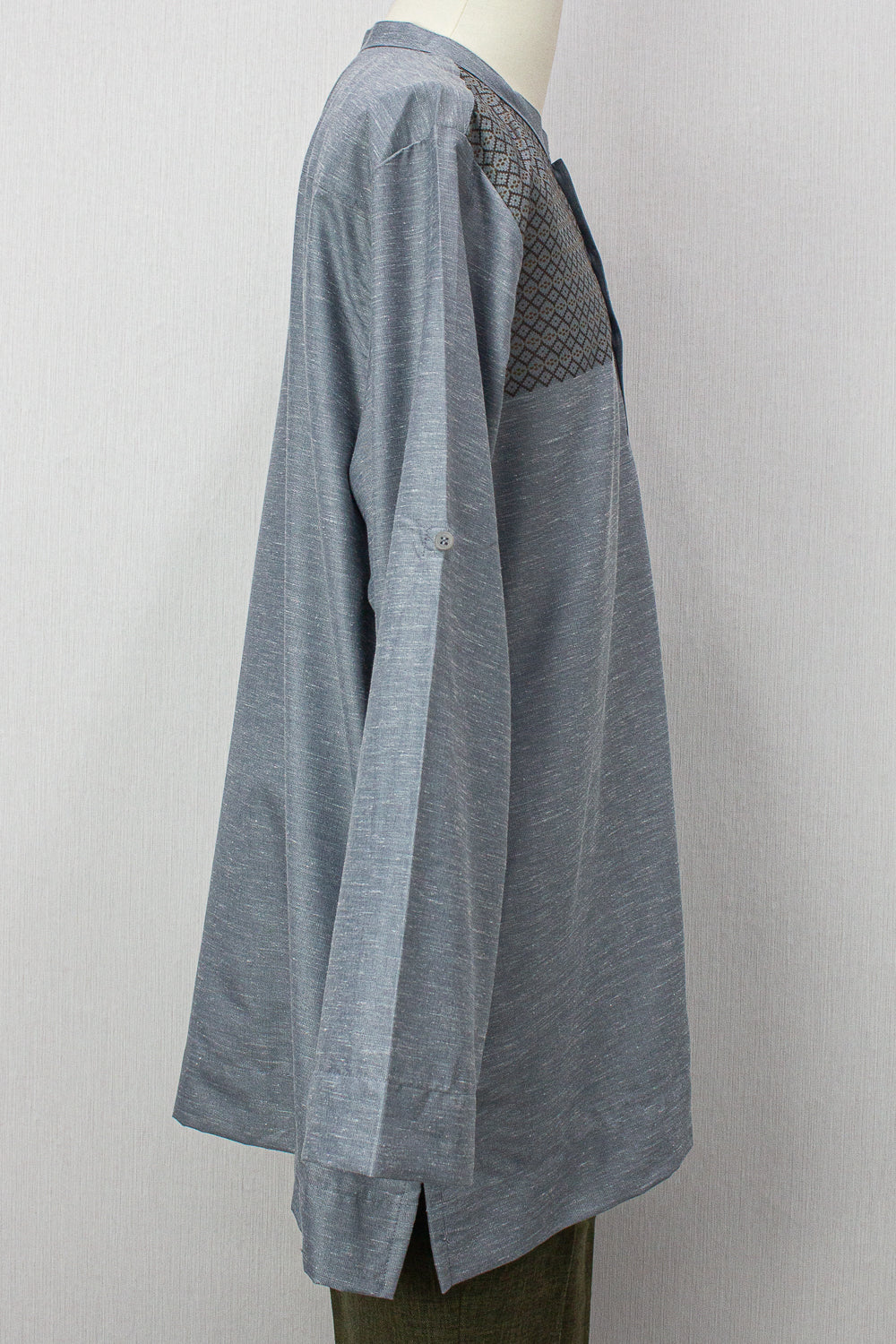 The Ashraf Kurta is a versatile essential made for both casual days and special occasions. Designed with a mandarin collar and batik-inspired prints across the shoulder and chest, it brings a modern edge to a timeless style.