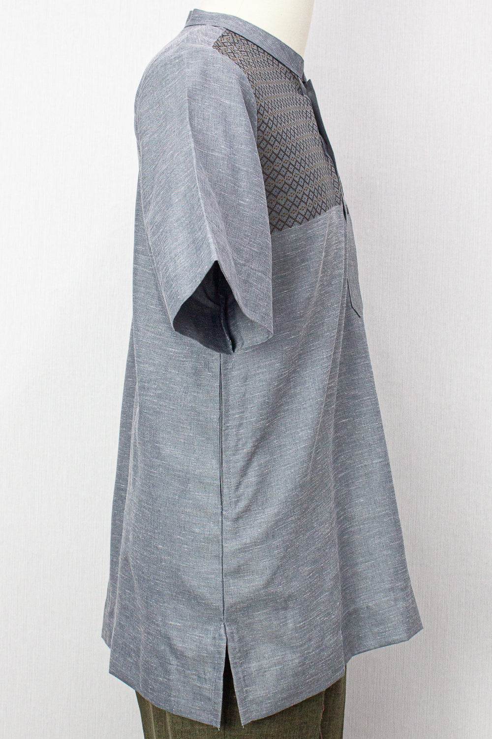 • Mandarin collar with tribal print detail for a unique look