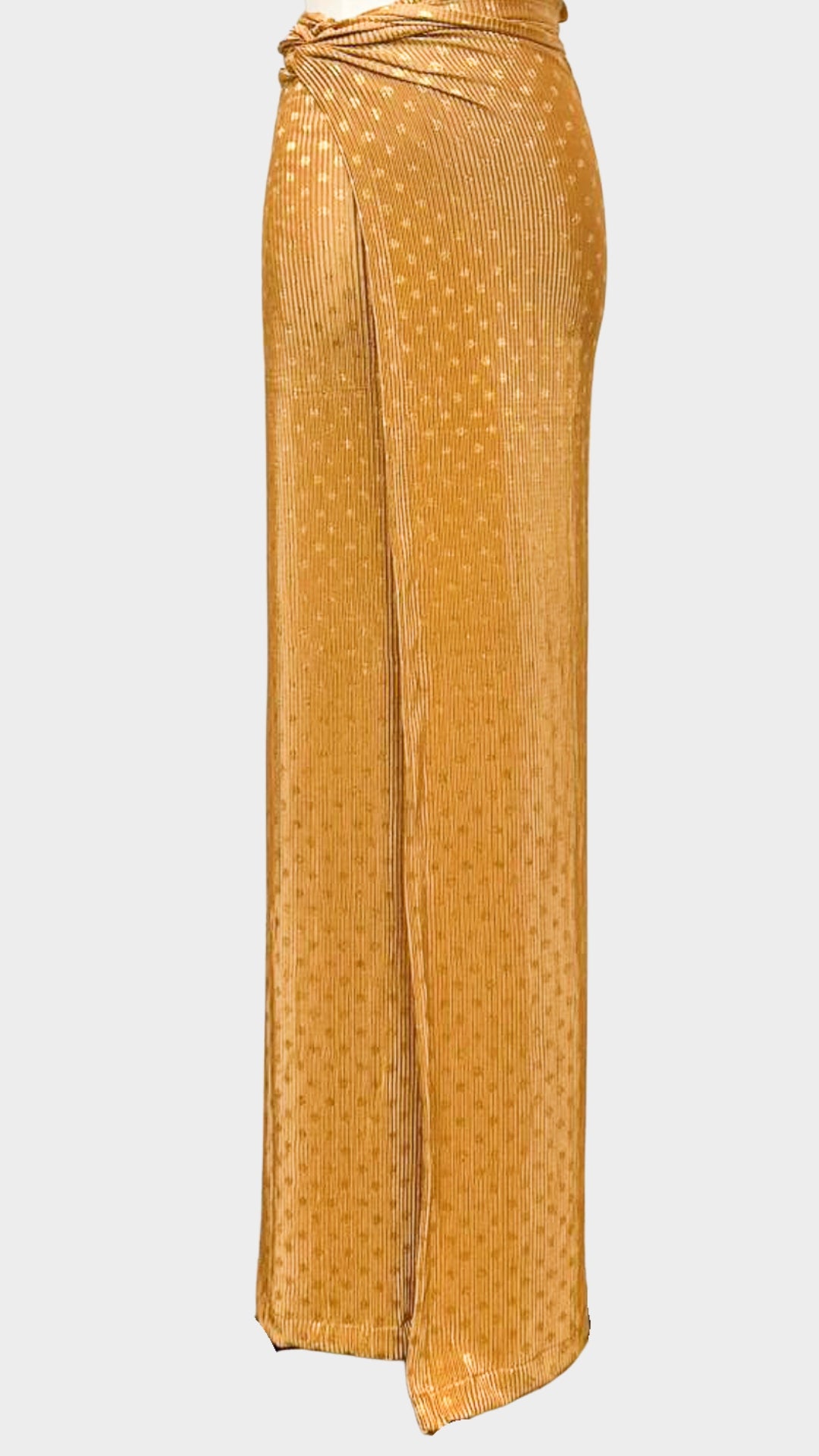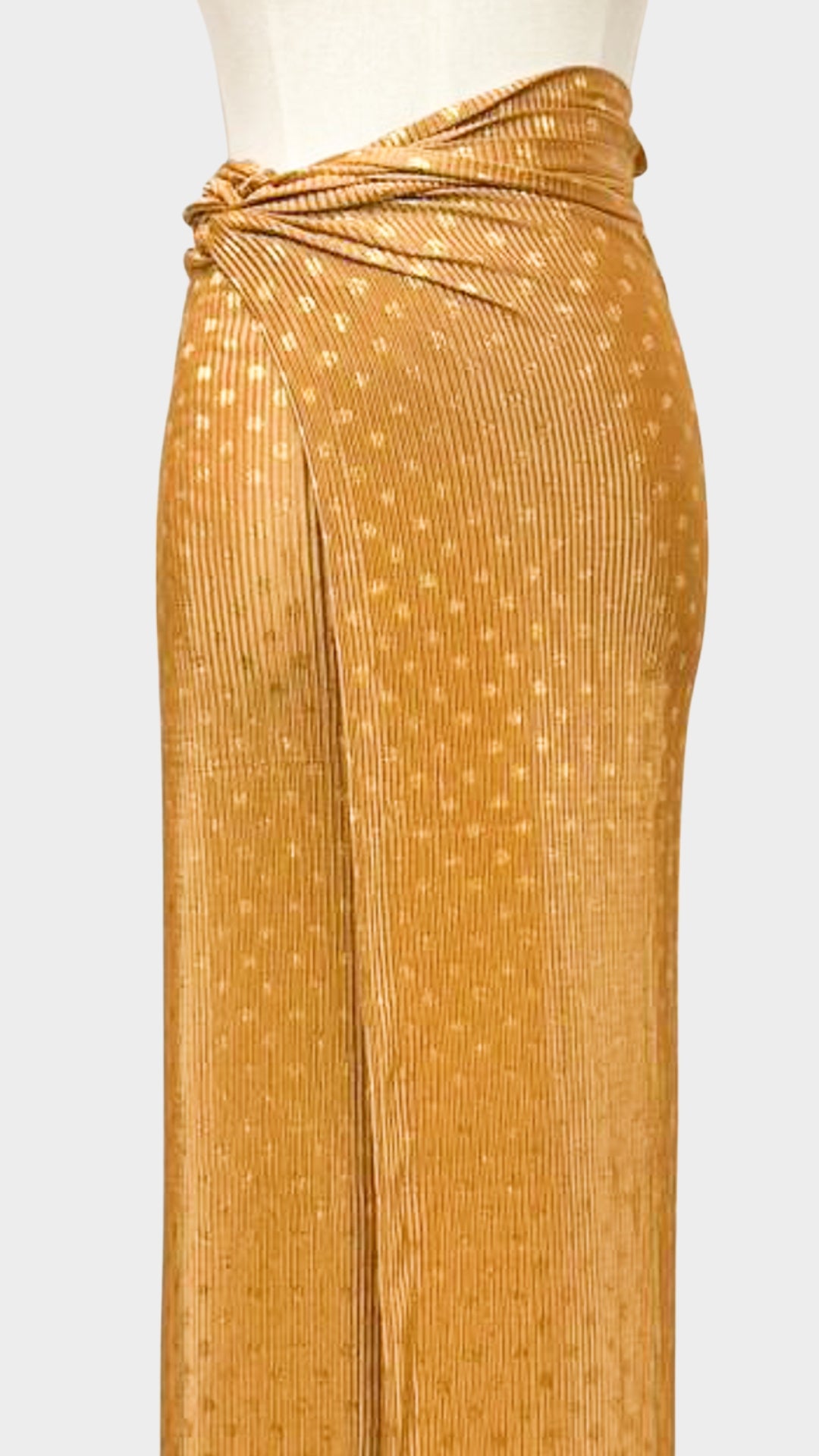 Elevate your wardrobe with our Pleated Wrap Skirt, designed for effortless elegance and flexible styling. Crafted with a beautiful shimmer finish, this skirt catches the light with every movement while maintaining a refined, feminine drape.
